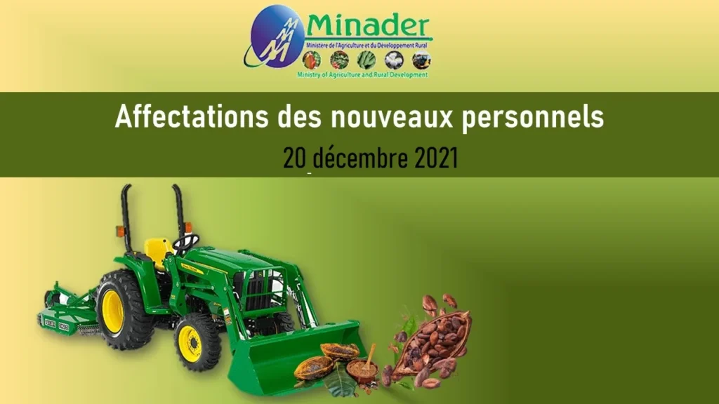 The Minister of Agriculture and Rural Development signed on December 20, 2021, Decision No. 00772/MINADER/SG/DRH/SDP assigning new civil servants (Agriculture and Rural Engineering) who have taken up service in the Human Resources Department. Read more… Download the Decision